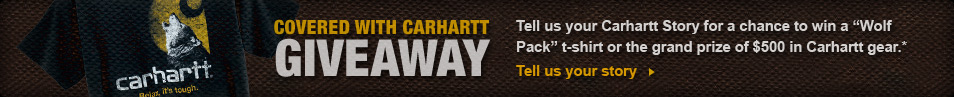 Like most people who deal with the power of mother nature in their everyday needs, require the extra Carhartt provides to make sure they get through the day. Like many kids from a construction family my first pair of Carhartt's were hand-me-downs from my father. I used them to stay warm while hunting during the winter months. The night before opening day of the 1989 deer season freezing rain fell causing the next morning's hunt to be a little more diffcult. I decided to hunt as the ice was only on the trees and not the ground. While climbing into the 25 foot tall tree stand I slipped on the icey climbing pegs. I would have fell 20 or more feet had my Carhartt jacket wrist snap hole not caught on the peg my hand had been holding on too. I managed to get enough of a grip on another peg to free myself and jump to the ground rather than land on my back in the brush below. The wrist band was torn but still attached. I came across the gear a couple years ago 2007 when cleaning out some boxes at my fathers house after he passed away. I had to laugh about the whole experience and relise how luckey I really was to have not recieve any injuries from the event. My nephew was 13 when we found the old gear and asked if he could have them to start his hunting vertures. He now wears them every season rembering his grandpa and the story I have about how Carhartt gear is the tuffest on the market.